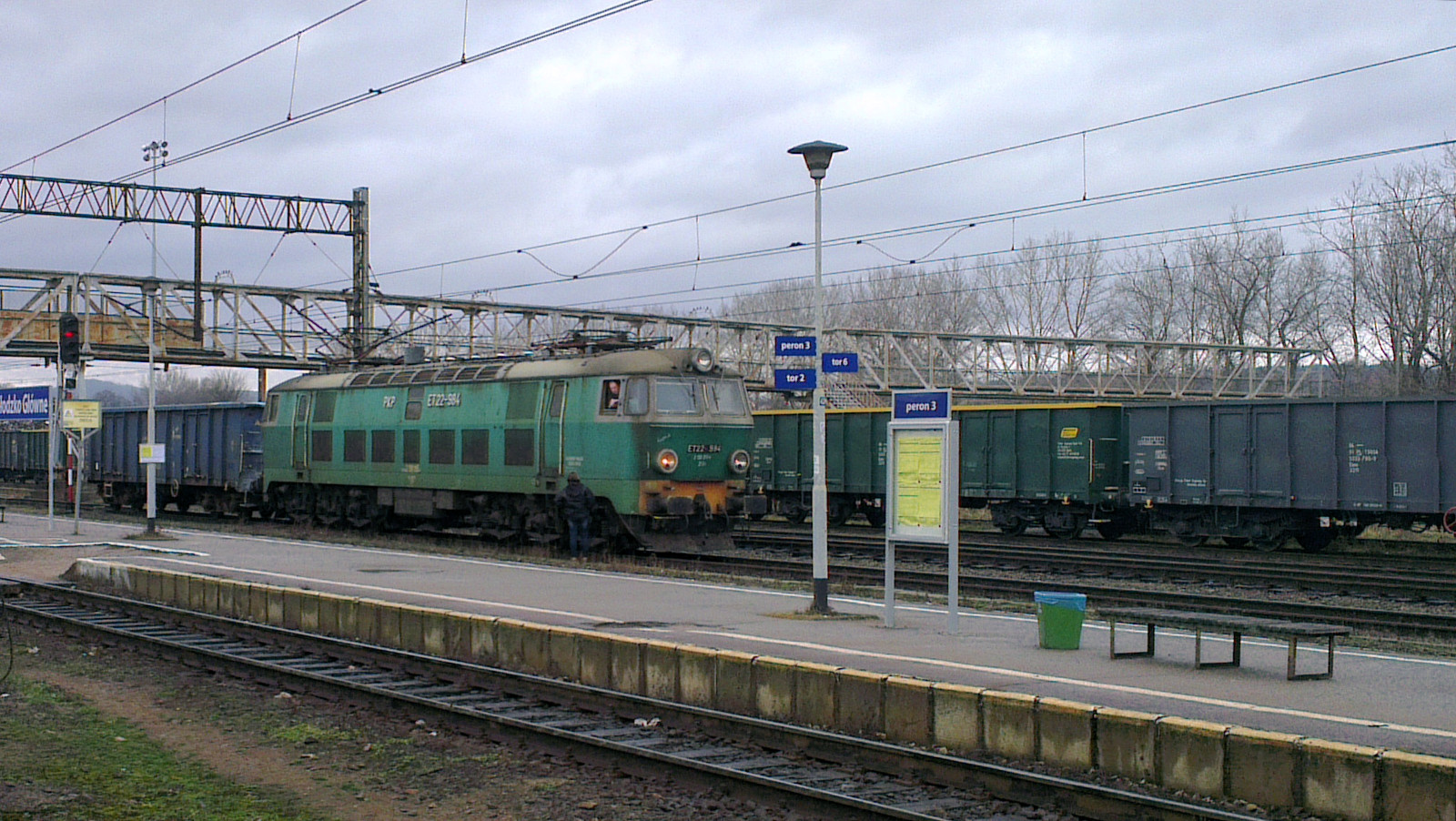 A PKP class ET22 briefly stopped on its way north to pick up some documents. It then proceeded to the end of the yard where it waited a long time for a signal to clear.